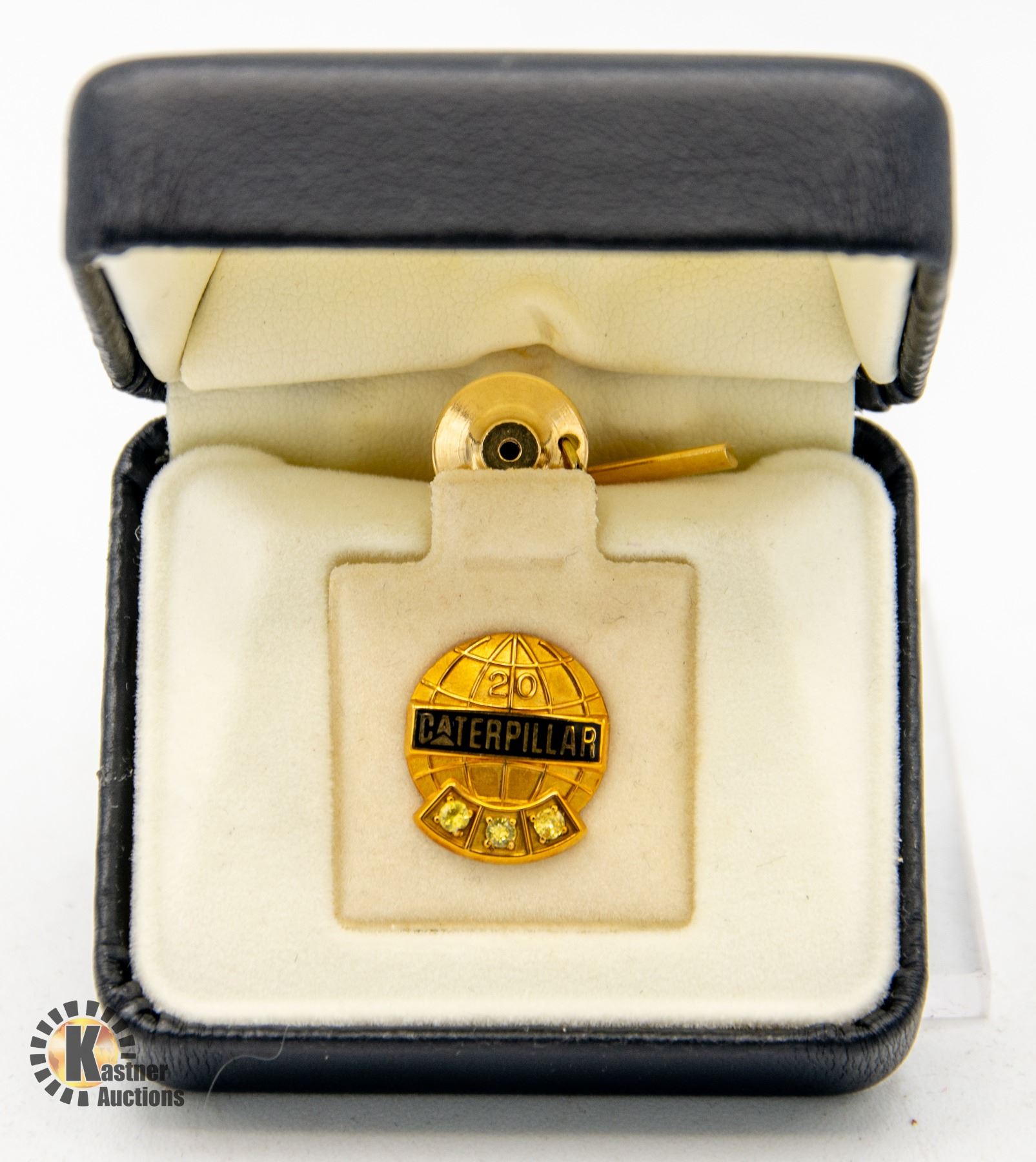 14K GOLD CATERPILLAR AWARD PIN WITH GEMSTONES