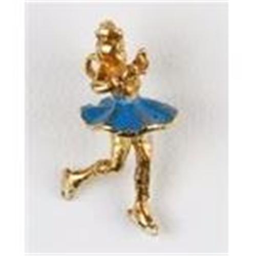 Vintage 14k Yellow Gold Charm of a Girl Ice Skater - wearing a blue skirt and white ice skates!