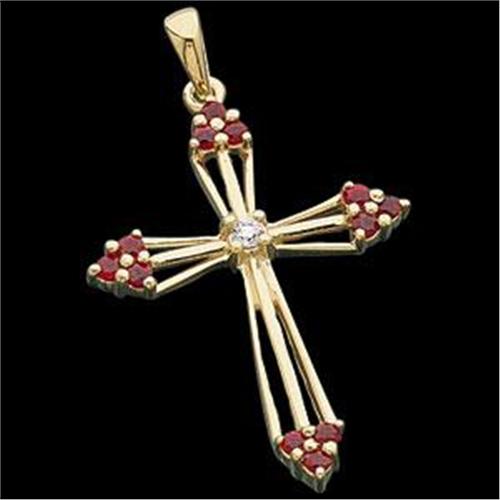 <tr><td>Title:14K GOLD CROSS RUBY w DIAMOND PENDANT </td></tr>