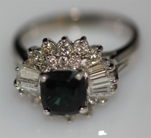 14K GOLD CUSHION COLOR CHANGE GARNET AND DIAMOND RING **|**|** 14K GOLD CUSHION COLOR CHANGE GARNET AND DIAMOND RING; MAINSTONE 2.5 CTW; DIAMOND 1.08 CTW' GOLD 5.5 GRAMS/ 14K WHITE GOLD ; MSRP: $0