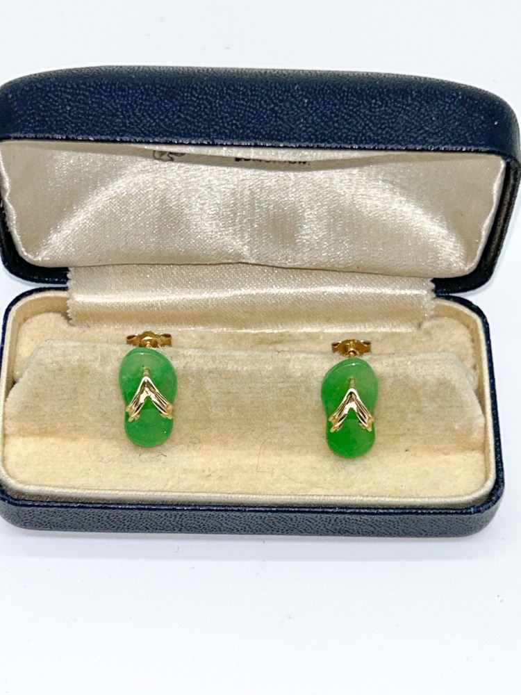 14K GOLD DESIGNER SIGNED JADE EARRINGS