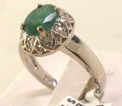 14K RING 4.3GRMS WITH 0.09CT ROUND DIAMOND & 1.20CT EMERALD