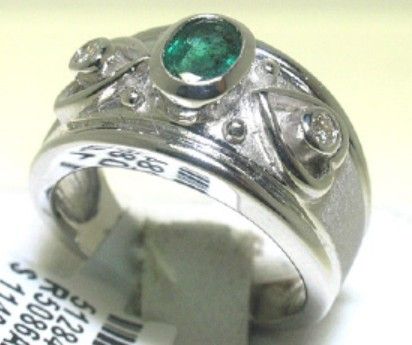 14K WHITE RING 5.30GRAMS WITH 0.06CT TW DIAMOND & 0.25CT EMERALD