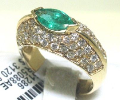14K YELLOW RING 3.3GRAMS WITH 1.09CT TW ROUND DIAMOND & 0.80CT MARQUISE EMERALD