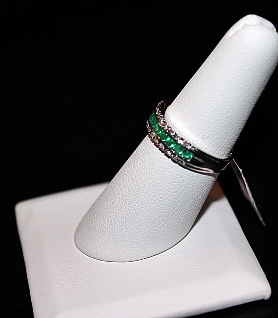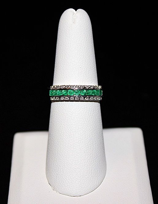 14K GOLD RING WITH 26 ROUND DIAMONDS AND 11 ROUND CUT EMERALDS. DIAMOND: 0.16CTW EMERALD: 0.59CTW GOLD: 2.92G. RETAIL PRICE $2196.00.