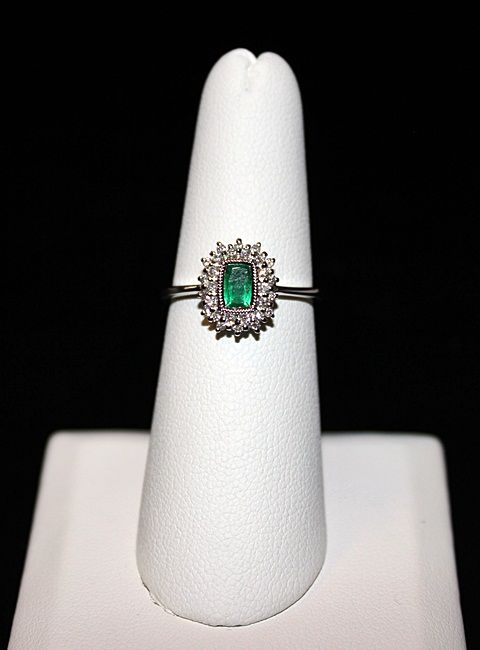 14K GOLD RING WITH 28 ROUND DIAMONDS AND 1 BAGUETTE CUT EMERALD. DIAMOND: 0.18CTW EMERALD: 0.54CTW GOLD: 2.39G. RETAIL PRICE $3564.00.