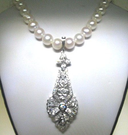14KW 11.00GRMS PEARL NECKLACE WITH 55 X 8.00MM PEARL & 1.10CT ROUND DIAMONDS