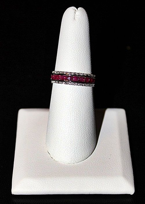 14K GOLD RING WITH 26 ROUND DIAMONDS AND 10 ROUND CUT RUBIES. DIAMOND: 0.11CTW RUBY: 0.87CTW GOLD: 2.83G. RETAIL PRICE $2160.00.