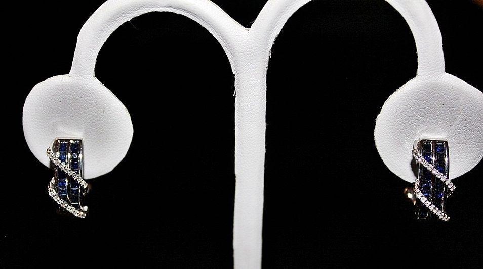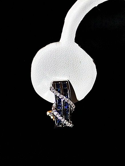 14K GOLD EARRINGS WITH 40 ROUND DIAMONDS AND 36 ROUND CUT SAPPHIRES. DIAMOND: 0.18CTW SAPPHIRE: 1.77CTW GOLD: 6.20G. RETAIL PRICE $4392.00.
