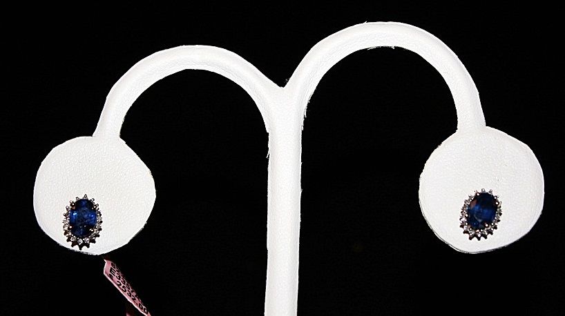 14K GOLD EARRINGS WITH 36 ROUND DIAMONDS AND 2 OVAL CUT SAPPHIRES. DIAMOND: 0.18CTW SAPPHIRE:2.06CTW GOLD: 1.78G. RETAIL PRICE $2532.00.