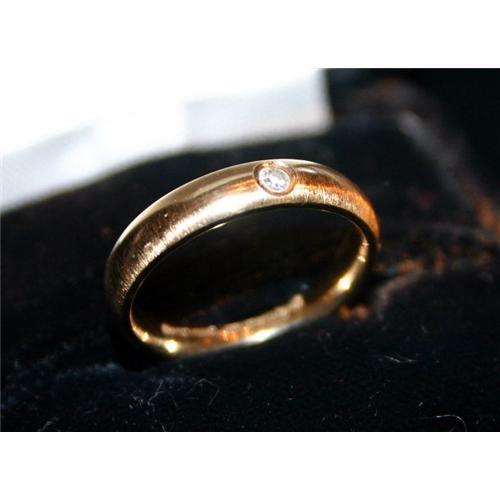 "Benchmark COMFORT-FIT" - Shiney High Polish - 4.3grams -- 2.8dwt -- of solid gold - Flush Set Eight pt clean, white diamond - NEVER WORN -Excellent Conditiion