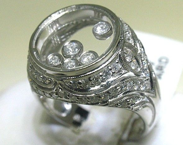 14KW 7.32GRMS CHOPPARD RING WITH 1.06CT ROUND DIAMONDS