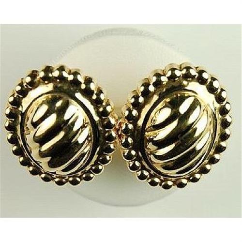 14k yellow gold Oval earrings, fluted, with a beaded gold frame. These Earrings measure 1 1/4" x 1" and they are in 'Brand New' Condition.