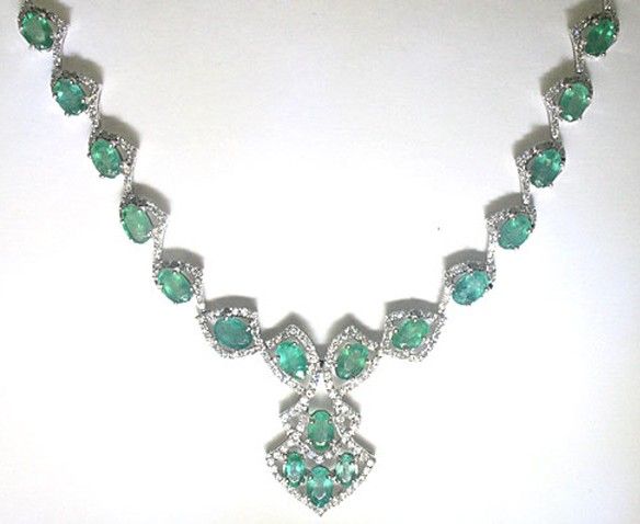 14K NECKLACE 30.40GRMS WITH 3.00CT ROUND DIAMOND & 17.00CT EMERALD