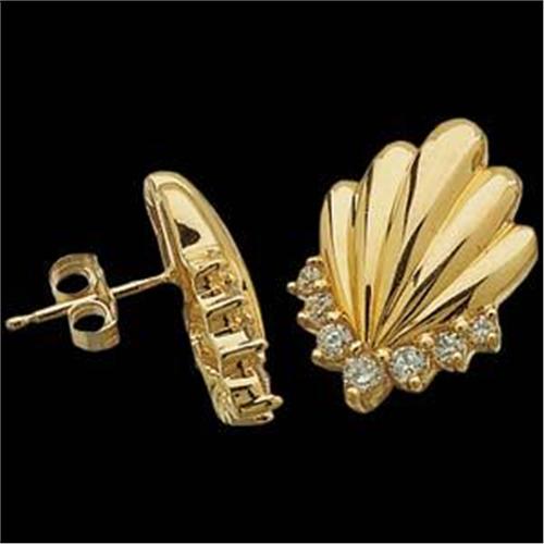 Very Beautiful 14k Yellow Gold Earrings! Each Earring features a 'fluted fan' design with 7 round Diamonds as accent. The Diamond Total Weight = .20 Carats! They are in Brand New condition and they are simply stunning.