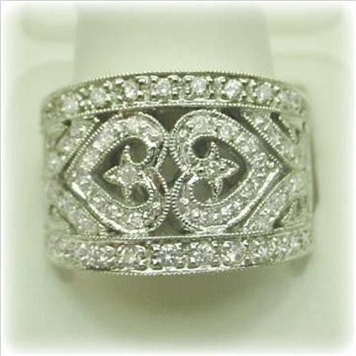 <b>Solid 14K White Gold sets this feminine, 1 carat, Genuine Diamond ring. <p><P>Gorgeous Diamond studded Band forms two adjoining hearts in the center. Simply stunning! <p> This would make an ideal engagement, wedding or anniversary ring. <P>Ring is brand new. We were able to purchase these items at a huge savings, which we now pass on to you! Most of these pieces are one of a kind. We have not factored in the increased price of Gold, so this is a double value! <p> <p> * Insurance is included in our shipping charges.