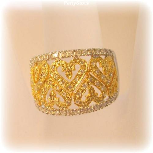 Absolutely stunning! This wide, filigree ring is rich with diamonds and brilliant yellow and white gold! Heart design is exquisite. Eye clear diamonds sparkle all over this gorgeous ring.