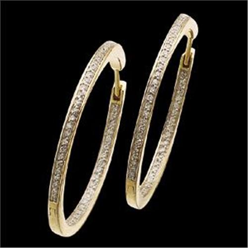 This pair of 14k Yellow Gold HOOP Style Earrings measures 1" . The Earrings feature Sparkling Diamonds with a Total Weight = ONE CARAT!! The Diamonds are all Fine 'G' Color and Fine 'SI1' Clarity - and they sure DO SPARKLE!