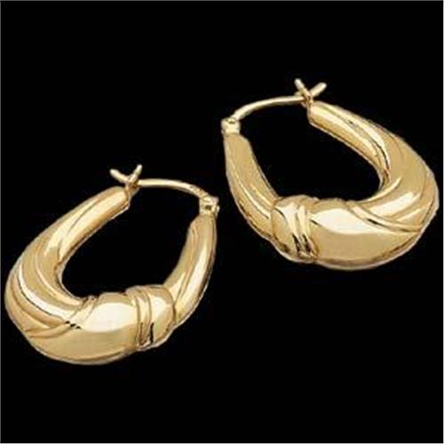 14k Yellow Gold HOOP Style Earrings with a swirled design. The Earrings measure 1" x 3/4" and they are BRAND NEW!