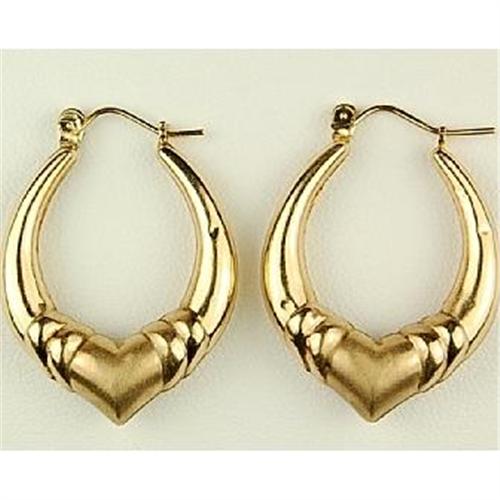 14k Yellow Gold Hoop Style Earrings with Heart at the base. This pair of 14k Gold earrings measures 7/8" across.
