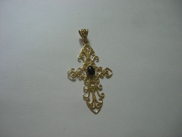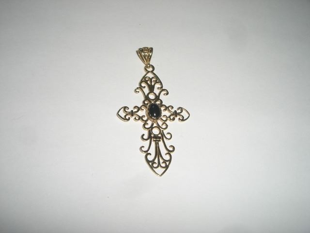 14K GOLD ITALY CROSS PENDANT WITH BLACK ONYX CENTER STONE STAMPED *14K ITALY* -BEUATIFUL UNIQUE DESIGN WITH TOTAL WEIGHT OF 4.40g!! PENDANT CAME OUT OF SAFE BOX!! ***Coin, Currency & All Items Listed in this auction - Grades, Conditions and Values are not Safe Deposit Coins LLC Responsibilty. Grades, Condition and Values are determined by Consigner(s) & Buyers
