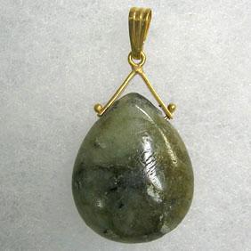 14K YELLOW GOLD LABRADORITE PENDANT. OVERALL DIMENSION: 20x17 MM
