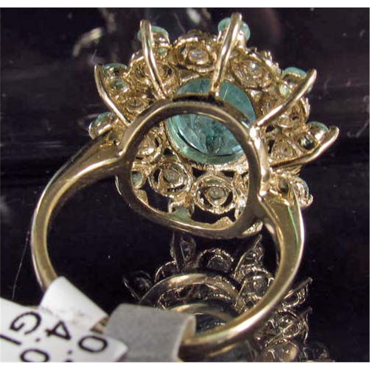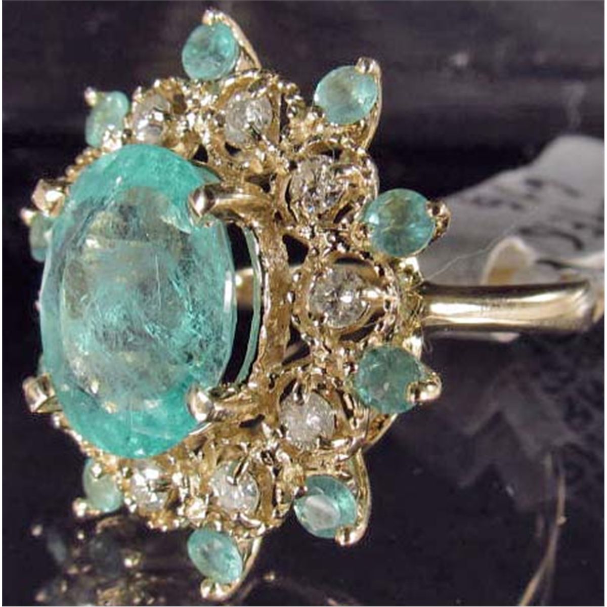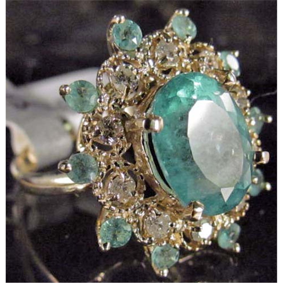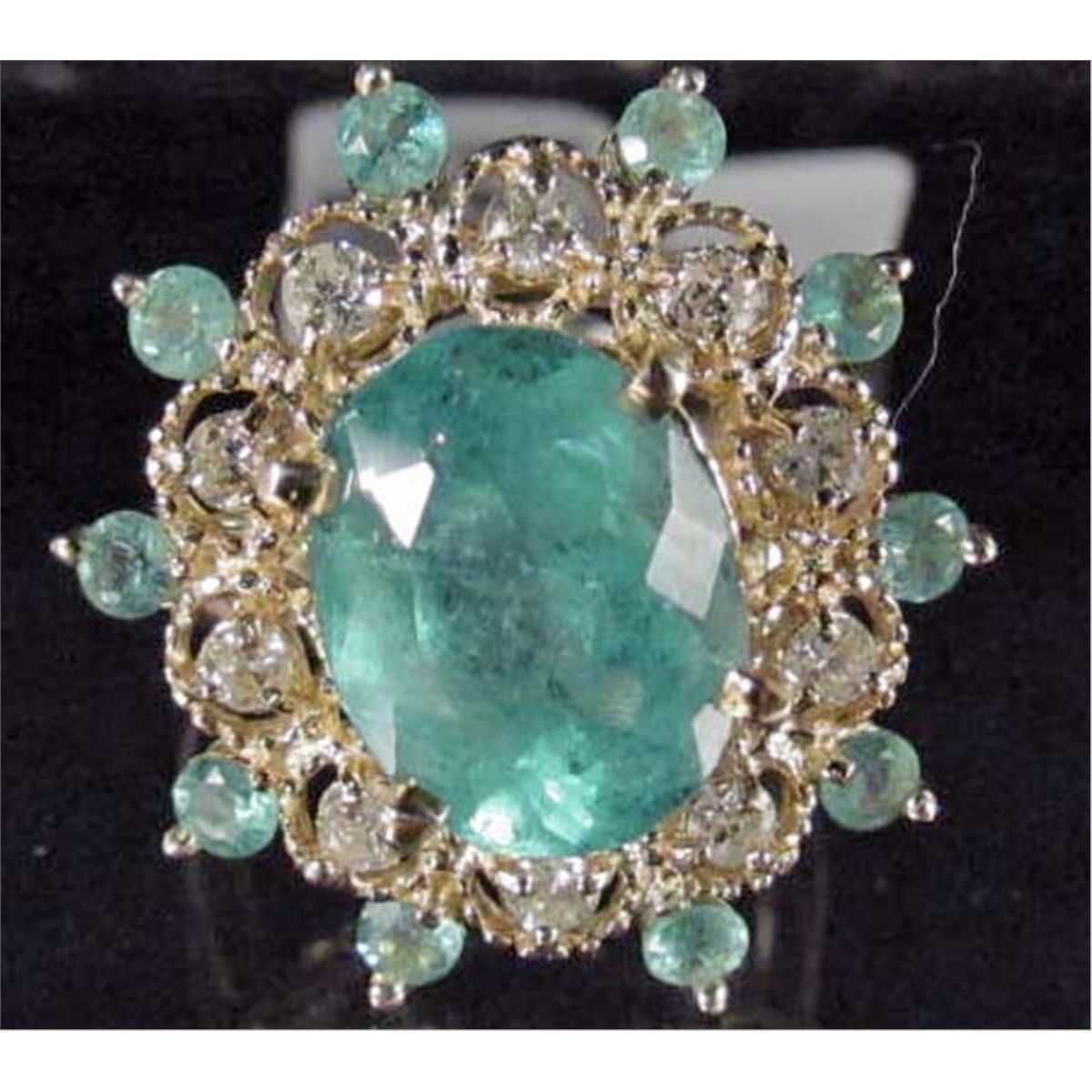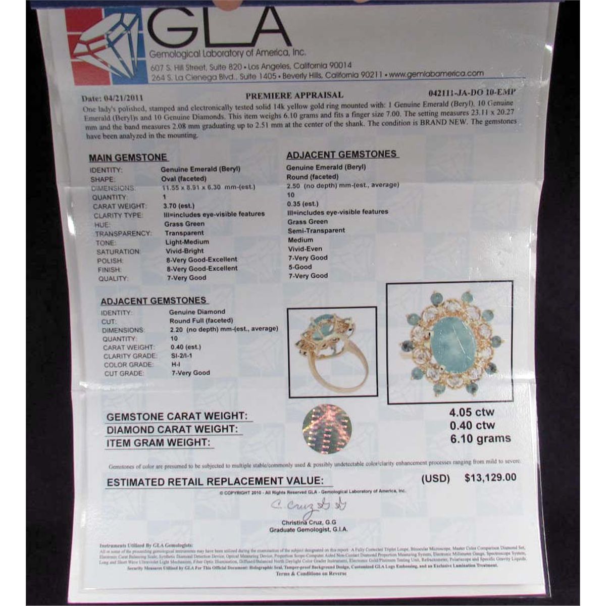 Comes w/ GLA Appraisal of $13,129.00. One oval Emerald center stone. 10 round Emerald adjacent stones. 10 round full cut Diamonds. Emeralds 4.05 cts., Diamonds 0.40 cts, Total Weight 6.10 grams.