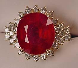 14K GOLD LADIES RUBY AND DIAMOND RING - Comes with AIG appraisal of $7,450.00. One prong set oval mixed cut ruby. 28 prong set round brilliant cut diamonds. Ruby 11.66 CT, Diamonds 1.13 CT, Total Weight 9.40 GM.