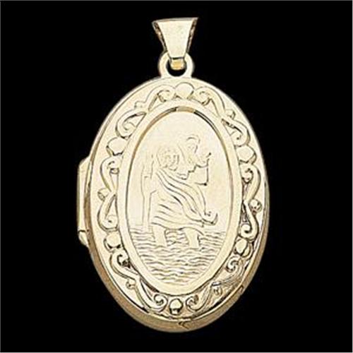 This is a very beautiful and unusual Gold Locket. It is 14k Yellow Gold, oval shaped, and measuring 29mm x 19mm. The front of the Locket has a beautiful engraving of St. Christopher. The back of the locket has 'St. Christopher Pray For Us' etched into it. And yes, it opens for your photos. It is in Mint condition.