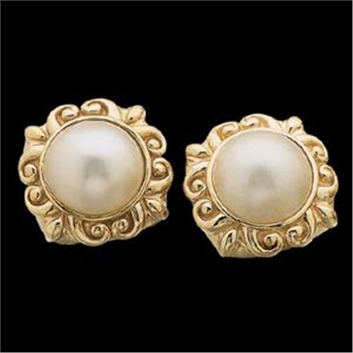 If you like Mabe Pearls, you will adore this pair of earrings. They are 14k Yellow Gold, and each earring features a FINE Quality MABE PEARL 12MM in size surrounded by very beautiful Gold scrollwork. They are in MINT condition and I HIGHLY recommend them to you.