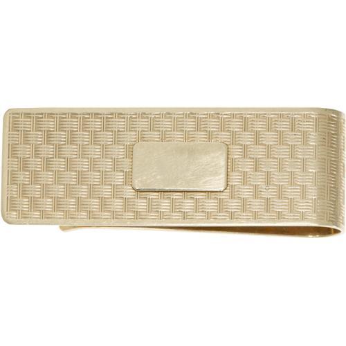 <B>14k Gold Money Clip</B></I><BR><BR>The 14k yellow gold money clip has a basketweave pattern framing a centralized cartouche which is suitable for engraving. Gross weight 19.70 grams. Dimensions: 2-1/8 inches x 3/4 inch.<BR><BR> <B>Condition Report:</B> Very good condition.<BR><BR><b>Shipping:</b> Miscellaneous Collectibles, Smal (<a target="_blank" href="http://www.heritageauctions.com/common/shipping.php">view shipping information</a>) <BR><BR><B>Importan