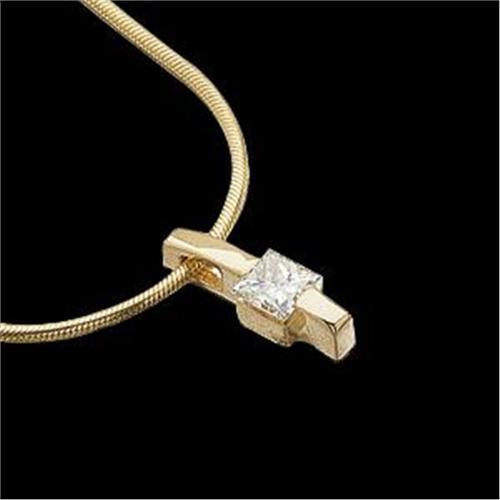 Elegant 14k Yellow Gold Diamond Necklace featuring a 14k Gold Slide Pendant with a Princess Cut Diamond = .38 CARATS! The Diamond is white and bright and 'SI2" Clarity and 'H' Color, and it slides on a 14k Yellow Gold 'snake' chain 18 inches in length.