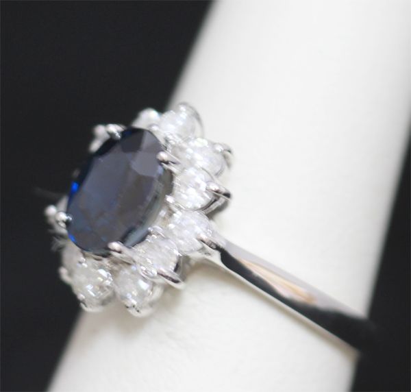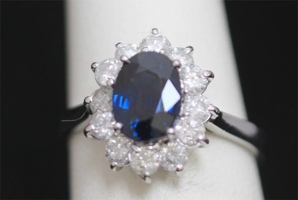 14K GOLD OVAL BLUE SAPPHIRE AND DIAMOND RING **|**|** 14K GOLD OVAL BLUE SAPPHIRE AND DIAMOND RING; MAINSTONE 2.3 CTW; DIAMOND 0.8 CTW; GOLD 3.5 GRAMS 14K WHITE ; MSRP: $0