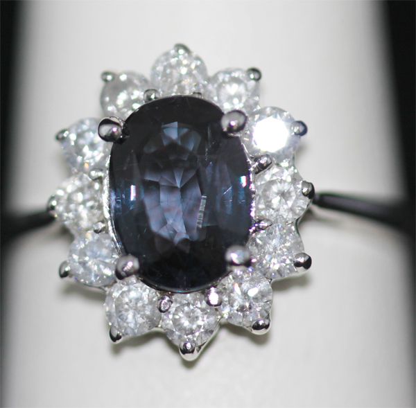 14K GOLD OVAL COLOR CHANGE GARNET AND DIAMOND RING **|**|** 14K GOLD OVAL COLOR CHANGE GARNET AND DIAMOND RING; MAINSTONE 1.83 CTW; DIAMOND 0.70 CTW; GOLD 14K WHITE 3 GRAMS ; MSRP: $0