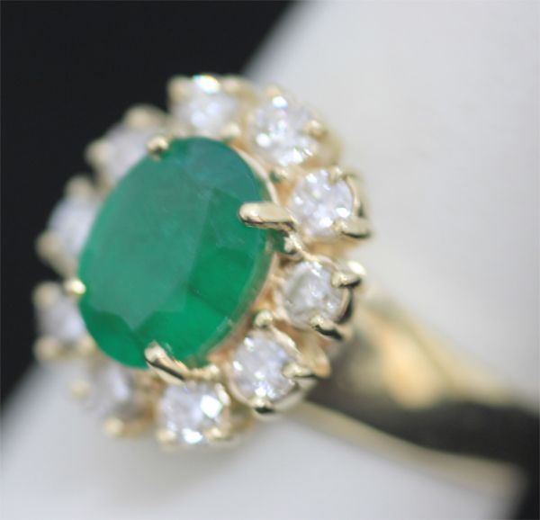 14K GOLD OVAL EMERALD AND DIAMOND RING **|**|** 14K GOLD OVAL EMERALD AND DIAMOND RING; MAINSTONE 2.2 CTW; DIAMOND 1.0 CTW; GOLD 14K YELLOW 6.2 GRAMS ; MSRP: $0