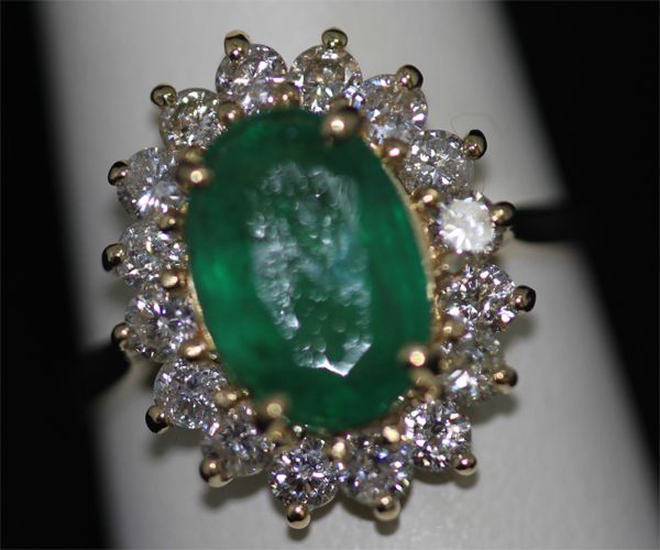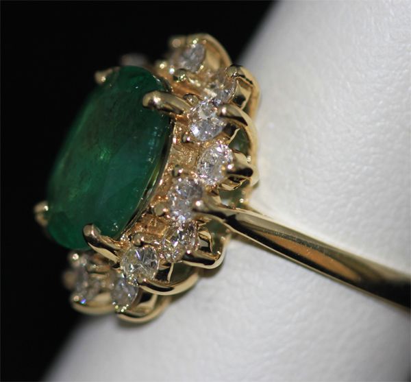 14K GOLD OVAL EMERALD AND DIAMOND RING **|**|** 14K GOLD OVAL EMERALD AND DIAMOND RING; MAINSTONE WEIGHT 2.6 CTW; DIAMOND 1.0 CTW; GOLD 4.5 GRAMS; 14K YELLOW GOLD ; MSRP: $0