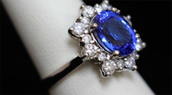 14K GOLD OVAL TANZANITE AND DIAMOND RING **|**|** 14K GOLD OVAL TANZANITE AND DIAMOND RING; MAINSTONE 4.37 CTW; DIAMOND 1.00; GOLD 14K WHITE 5.5 GRAMS ; MSRP: $0