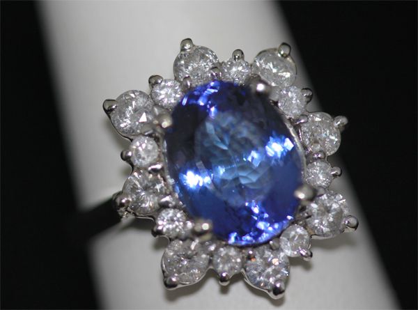 14K GOLD OVAL TANZANITE AND DIAMOND RING **|**|** 14K GOLD OVAL TANZANITE AND DIAMOND RING; MAINSTONE 4.12 CTW; DIAMOND 1.06 CTW; GOLD 14K WHITE 5.0 GRAMS ; MSRP: $0