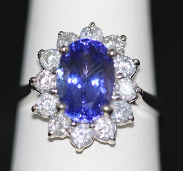 14K GOLD OVAL TANZANITE AND DIAMOND RING **|**|** 14K GOLD OVAL TANZANITE AND DIAMOND RING; MAINSTONE 3.05 CTW; DIAMOND 1.12 CTW; GOLD 14K WHITE 4 GRAMS ; MSRP: $0