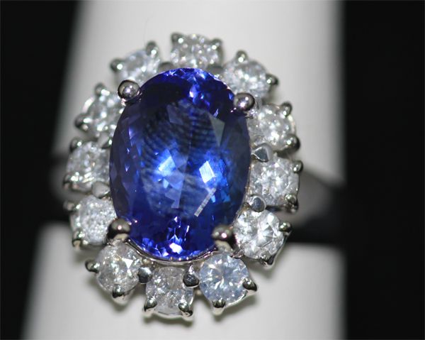 14K GOLD OVAL TANZANITE AND DIAMOND RING **|**|** 14K GOLD OVAL TANZANITE AND DIAMOND RING; MAINSTONE 3.47 CTW; DIAMOND 1.6 CTW; GOLD 14K WHITE 7.5 GRAMS ; MSRP: $0