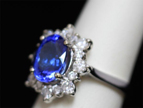 14K GOLD OVAL TANZANITE AND DIAMOND RING **|**|** 14K GOLD OVAL TANZANITE AND DIAMOND RING; MAINSTONE 4.37 CTW; DIAMOND 1.00; GOLD 14K WHITE 5.5 GRAMS ; MSRP: $0