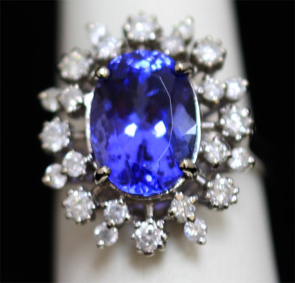 14K GOLD OVAL TANZANITE AND DIAMOND RING **|**|** 14K GOLD OVAL TANZANITE AND DIAMOND RING; MAINSTONE 5.4 CTW; DIAMOND 1.02 CTW; GOLD 14K WHITE 6.0 GRAMS ; MSRP: $0