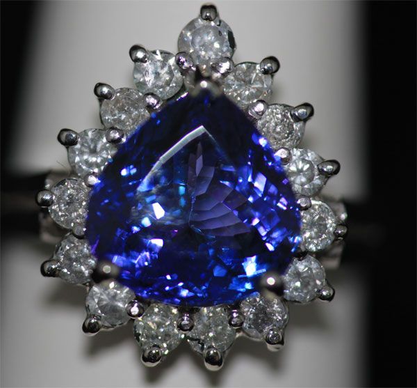 14K GOLD PEAR CUT TANZANITE AND DIAMOND RING **|**|** 14K GOLD PEAR TANZANITE AND DIAMOND RING; MAINSTONE WEIGHT 4.39CTW; DIAMOND 0.88 CTW; GOLD 7.0 GRAMS/ WHITE GOLD ; MSRP: $0