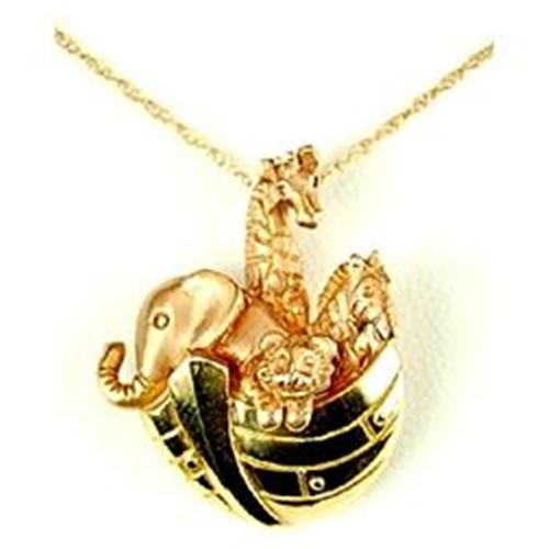 This 14k Yellow GOLD PENDANT features an adorable GOLD NOAHS ARK. The Ark itself is SOLID YELLOW GOLD and the animals - Giraffe, Elephant, Zebra and Pig are done in SOLID ROSE GOLD. The Pendant measures 1 inch across and it is suspended from a 14k Yellow Gold Chain 18 inches long.