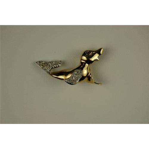 This 14k Yellow Gold Pin of a SEAL is set with SPARKLING DIAMONDS on his tail and on his fin. This is a VERY well made Gold Pin and Very adorable as well. The Gold Seal measure 1" from the tip of his nose to the tip of his Diamond tail!