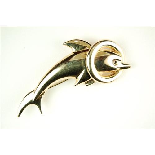 14k Yellow GOLD PIN of a DOLPHIN with a GOLD RING around its' neck. The Gold DOLPHIN measures 2 3/4" across, and it is adorable!
