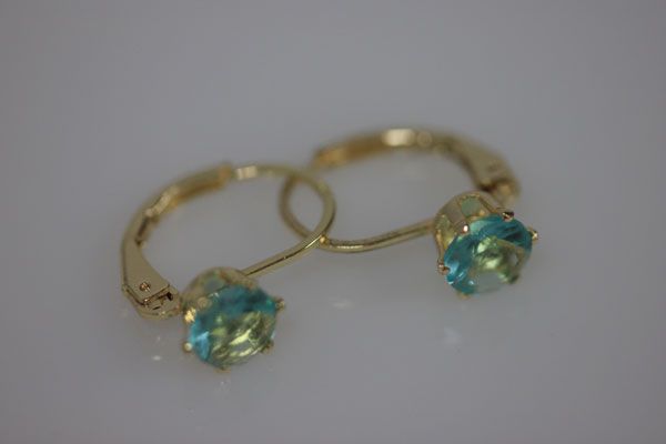 14K GOLD PLATED BLUE CZ EARRINGS **|**|** 14K GOLD PLATED BLUE CZ EARRINGS; METAL BRASS; BRAZILIAN JEWELRY; 14K GOLD PLATED ; MSRP: $0