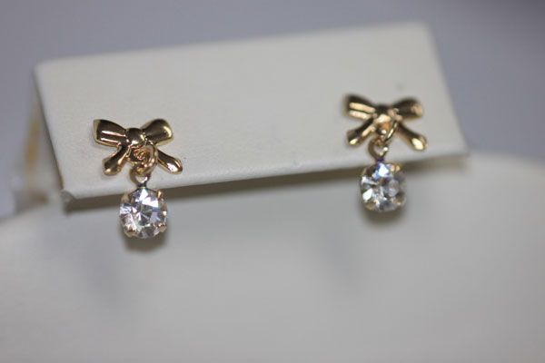 14K GOLD PLATED BOW AND CZ EARRINGS **|**|** 14K GOLD PLATED BOW AND CZ EARRINGS; METAL BRASS; BRAZILIAN JEWELRY; 14K GOLD PLATED ; MSRP: $0