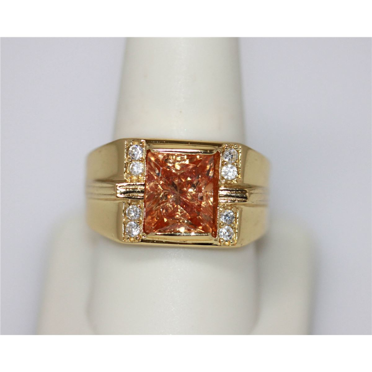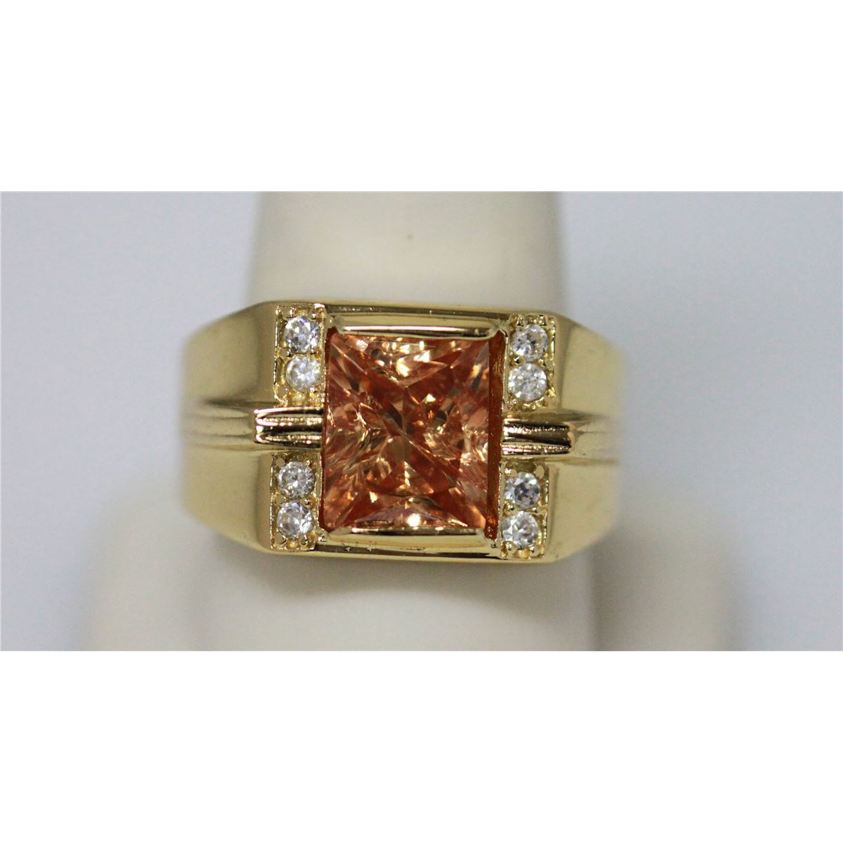 14K GOLD PLATED CZ AND ORANGE MENS RING **|**|** 14K GOLD PLATED CZ AND ORANGE MENS RING