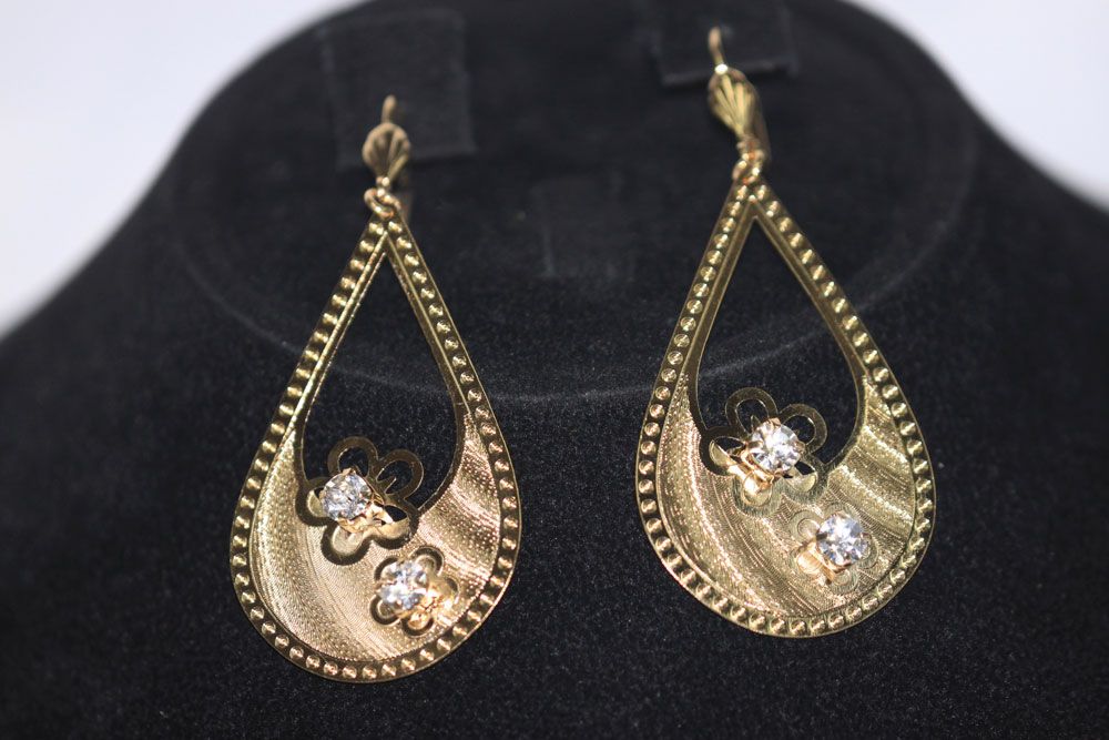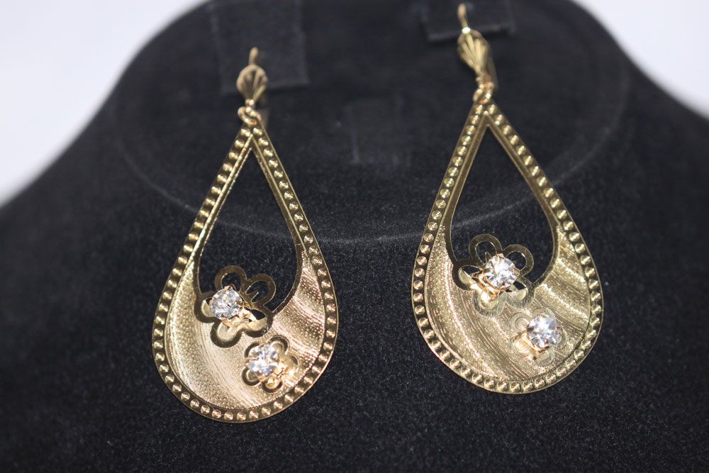 14K GOLD PLATED CZ CLEAR DANGLING FLOWER EARRINGS **|**|** 14K GOLD PLATED CZ CLEAR DANGLING FLOWER EARRINGS ; MSRP: $0